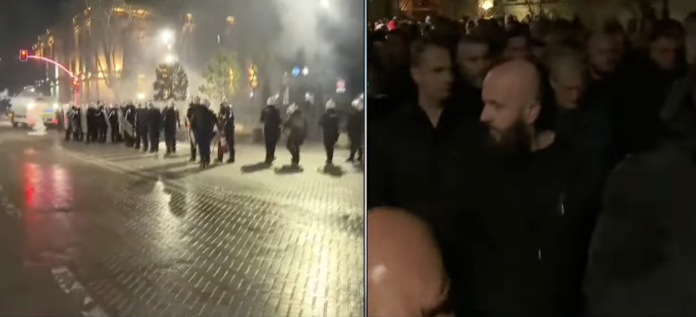 Ndërkohë, policia është përgjigjur me gaz lotsjellës.